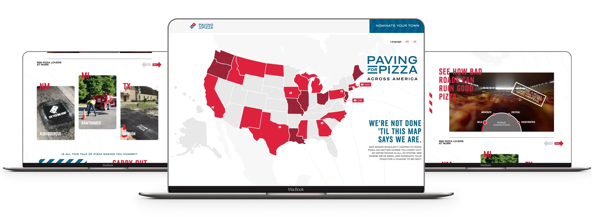 Carryout customers love to be in control, and Domino’s loves to help them have it when they pick up their pizza. But even the most shrewd of carryout customers can’t control what happens between the time they pick up their pizza and the time they get home. Domino’s wanted to help give them that and make sure that bad roads don’t happen to good pizza. So they set out to pave roads across America, all in the name of protecting their delicious pies.