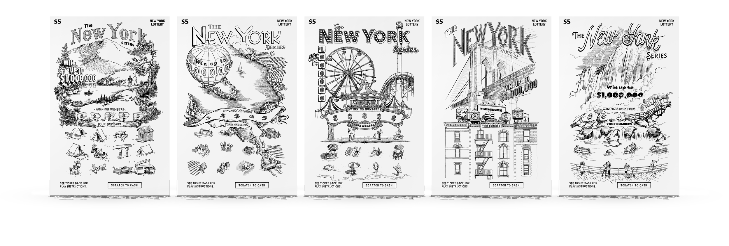 We partnered with a storied visual artist to celebrate the picturesque beauty that makes New York state great. He worked in painstaking detail over several months to create five unique, beautiful, scratchable pieces of art. Instead of glitz and glam, we went the opposite direction, sketching out meticulous black-and-white illustrations of New York’s most majestic landscapes.